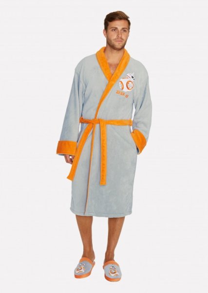 Slušivý pánský fleecový župan s motivem droida BB-8 z Hvězdných válek - Star Wars Episode VII. Župan patří k pohodlným doplňkům každé moderní domácnosti. Župan je ideální oděv po koupeli či teplé sprše aby Vaše tělo zůstalo pěkně zahřáté či jako oděv do sauny či na plovárny. Fleece župan BB-8 je vyrobený z polyesteru a je zdobený filmovým motivem z obou stran. Oficiálně licencovaný produkt. Vhodné do pračky. Kvalitní a velice příjemný materiál. Župan je v jedné velikosti.